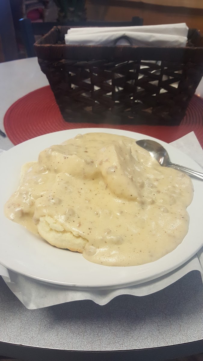 How did I not know about this place!!! The biscuits and gravy are amazing!! Pastrami breakfast burrito!! Butter pecan latte to go!!!